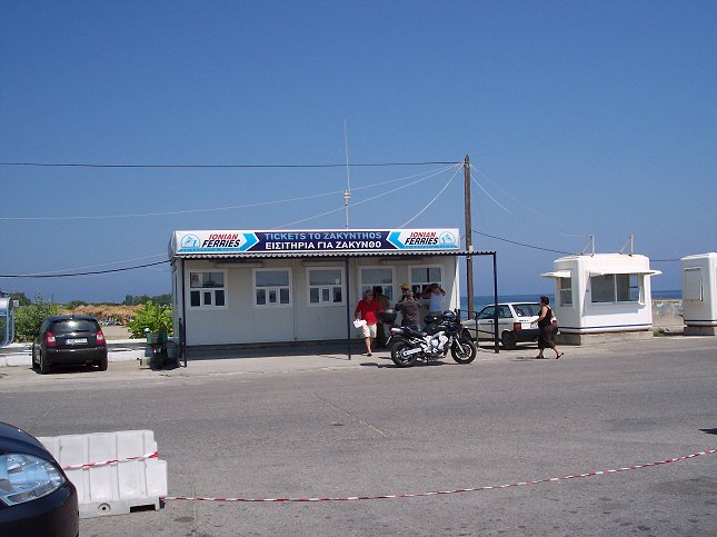 14. juli: Killini. Her købte vi billetter til færgen Ionis fra Ionian Ferries.