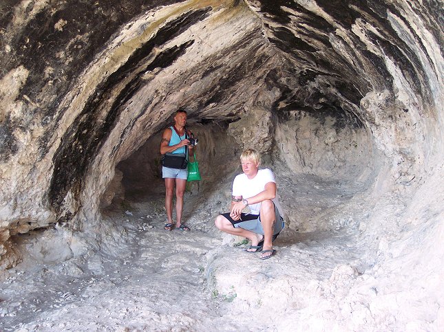 21. juli: Kresten og Christoffer inde i grotten 'Damianou'.