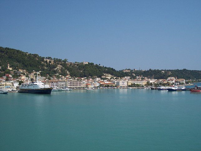 26. juli: Havnen i Zakynthos set fra færgen 'Dionisos Solomos'.