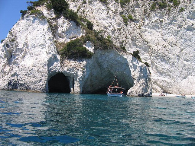 23. juli: Grotte på Marathonisi island. Den ser ikke særlig stor ud på billedet, men det var den, vi sejlede ind i den, og vi fyldte ikke meget i denne grotte.