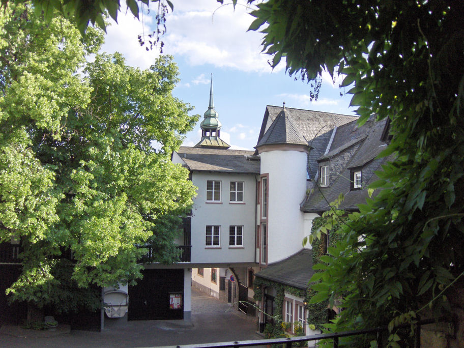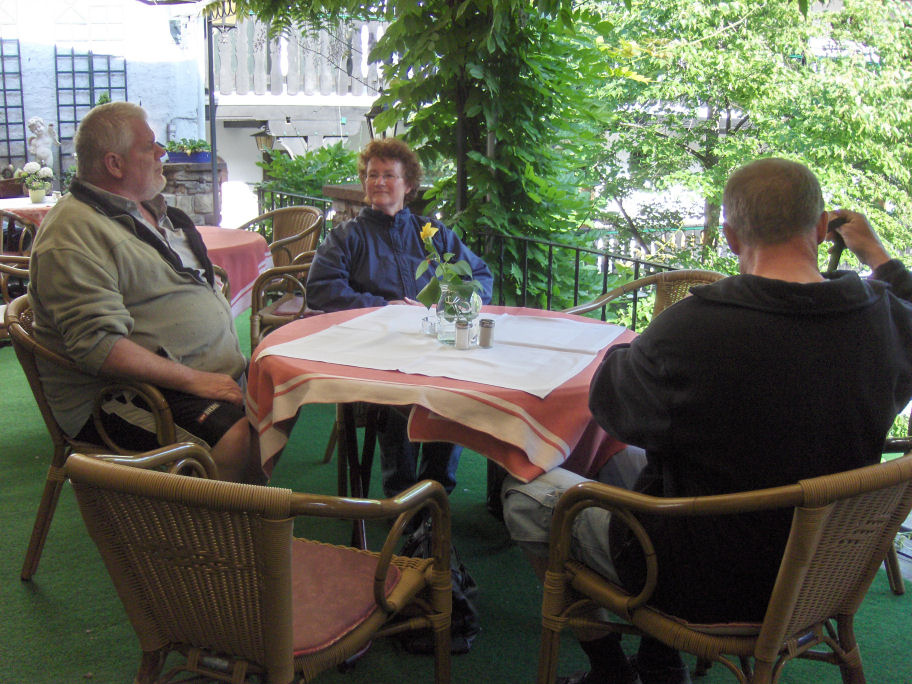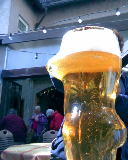 Vi cyklede ind i Drosselgasse og fik en øl på en restaurant med gårdhave: