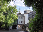 Udsigt til et tårn over en port - set fra restauranten - og samme tårn set fra gaden ved jernbanen: