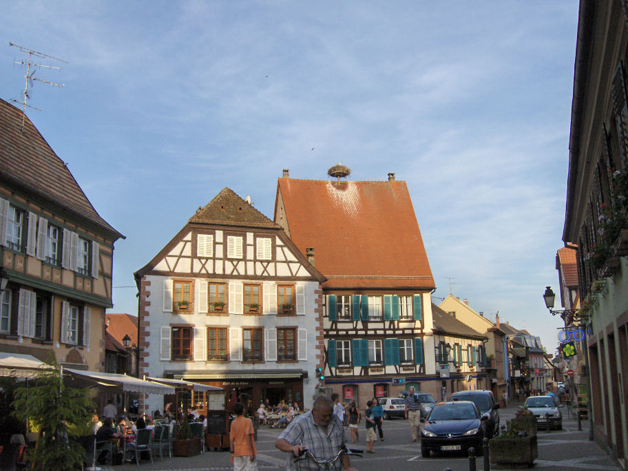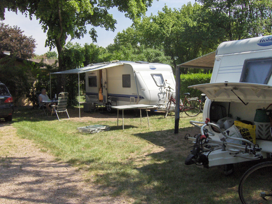 Ankomst til 'Camping Municipal Pierre de Coubertin', Ribeauville - der var middagslukket, så vi fik vores frokost i skyggen. 25 grader.