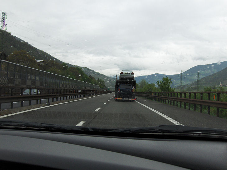 Da vi kom kørende bag denne bil-transporter, faldt der en stor kraftig metalring