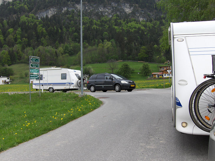 Ankomst til Camping Seeblick Toni, Kramsach, Østrig ved 15 tiden. Temperatur 20º og skyet: