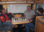 Da vi havde fået vores pladser, kom værten Toni kørende i sin lille golfvogn og hilste på os.