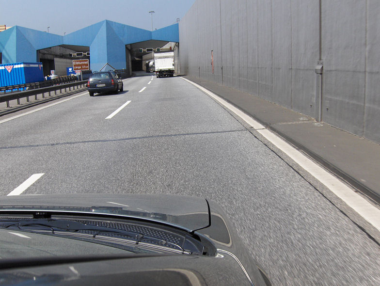 På vej ind i Elb-tunnellen: