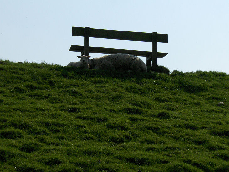 Vi ligger lige op af diget med udsigt til får: