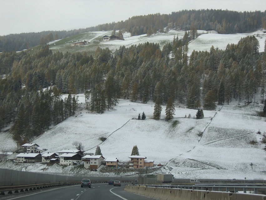 Kort før vi kørte ind i Østrig begyndte det at sne og der var kun minus 2