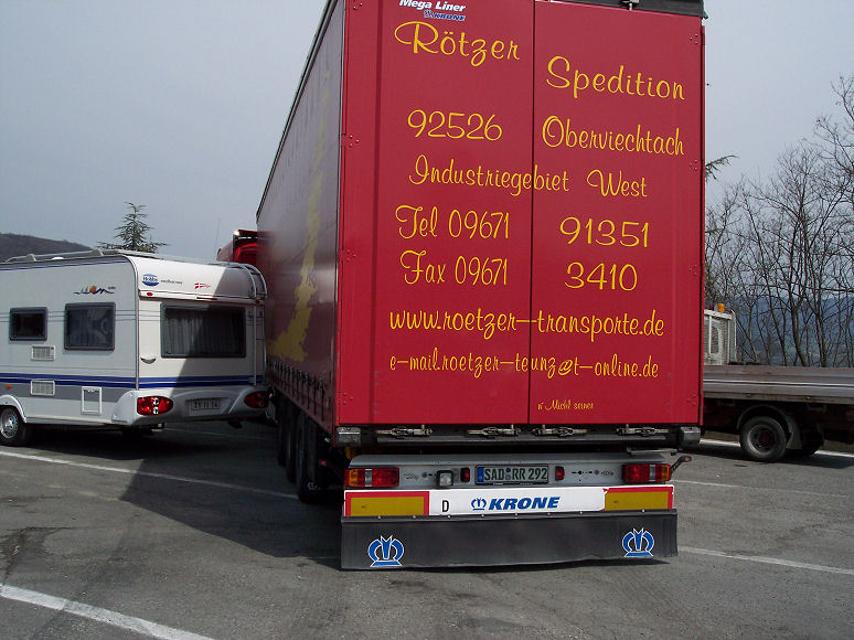 Afgang fra Camping Cisano, hvor vi betalte med Camping Cheques. Vi kørte videre mod Rom og holdt en pause på en rasteplads undervejs. Da vi holdt parkeret, kørte en lastbil ind i hjørnet af vores campingvogn. Stigen blev flået delvist af og da lastbilen bakkede igen, blev skinnen revet op: Nærkontakt med lastbil mens vi holdt parkeret