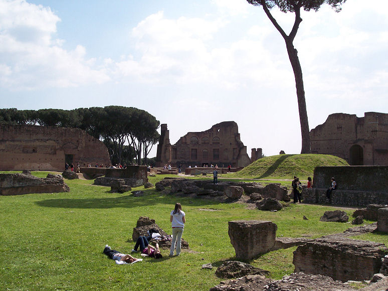 Der var en kæmpe billetkø for at komme ind i Colloseum, så det opgav vi. Vi gik en tur rundt om Colloseum. Til venstre for Colloseum ligger Forum Romanum og Palatino. Der var en rimelig billetkø, så der gik Kirsten og mig ind:
