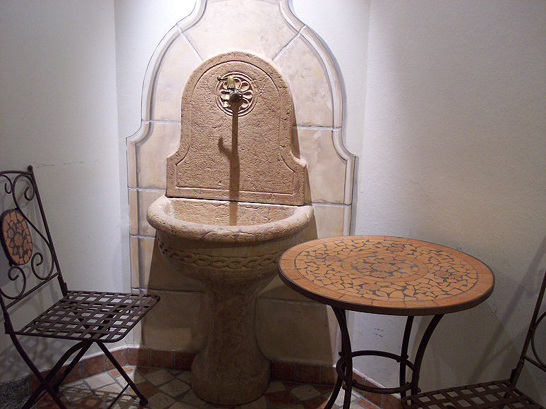 På Camping Seeblick Toni kom den meget venlige campingvært ud og tog imod os og gav hånd. Vi fik anvist pladser og fik udleveret armbånd, der skulle åbne døren til baderumsbygningen. - Og så skulle jeg lige tjekke forholdene af i baderummene, det er jo ingen hemmelighed, at det er det, jeg går mest op i på en plads. Jeg var målløs! Aldrig har jeg set så fine forhold. Vi har før været på 5 stjernede campingpladser, men har aldrig før fået serveret et komplet badeværelse med Grohe bruser, håndvask og toilet og vægge og gulv helt i marmor. Og der var mange af dem. Nogle af badeværelserne havde endog badekar. Der var også et rum med to tørrehjelme.