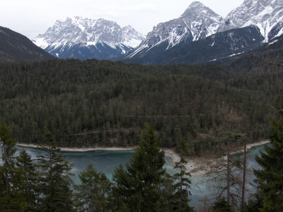Søen Blindsee ved restaurant Zugspitzblick, som man kommer forbi, når man kører gennem Fernpass