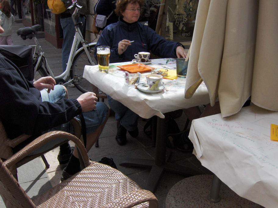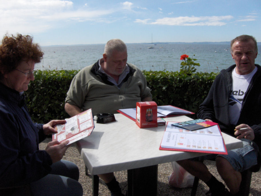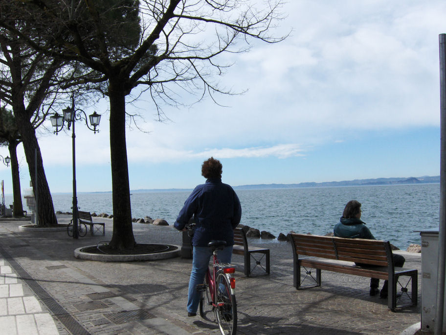 På vej tilbage til camping Serenella besøger vi en af de små strandrestauranter Den kvindelige indehaver kan godt huske os fra tidligere, vi har været både de sidste gæster, den dag sæsonen sluttede og de første gæster den dag sæsonen startede. Indehaveren fortalte, at der var lovet godt vejr ved Gardasøen de næste to dage, og at der længere nede var lovet 20 cm sne! Vi havde ellers tænkt os at køre mod San Marino i morgen, men vi bliver her til på onsdag, mens vejret er godt her.