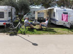 Vi cyklede op på campingpladsen, hvor der var 17 grader i skyggen og 33 grader i solen - så jeg fandt sommertøjet frem, hvor var det skønt. Underligt at tænke på at der andre steder i landet skal falde 20 cm sne, men det er jo ikke længere siden end i går, vi selv kørte i snevejr.