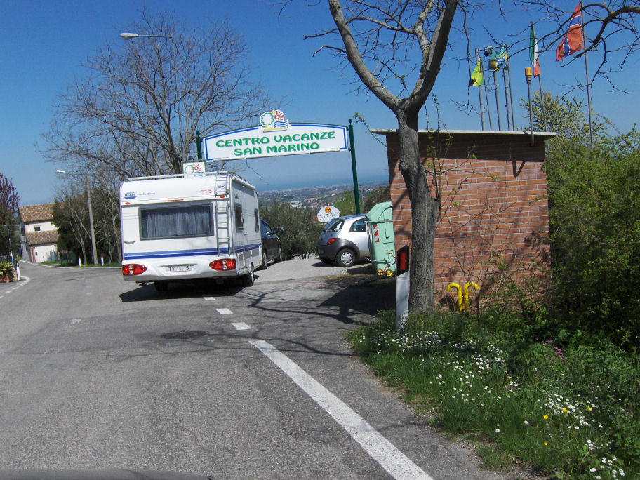 Ankomst til Camping Centro Vacanze, San Marino kl. 14.30