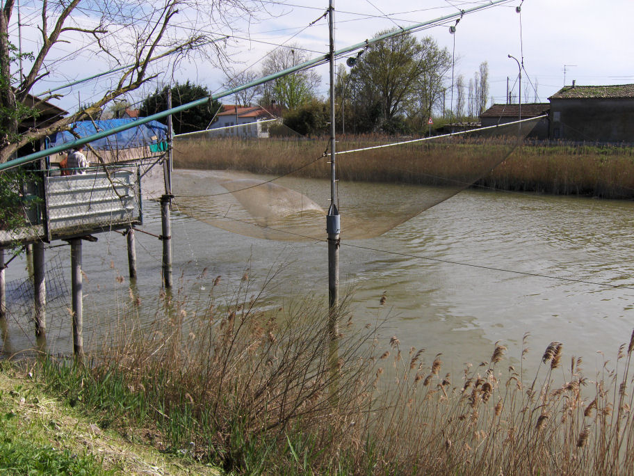 Fiskeri med store flade net; de var i vandet nogle få minutter, før de blev hejst op igen og tjekket for fisk