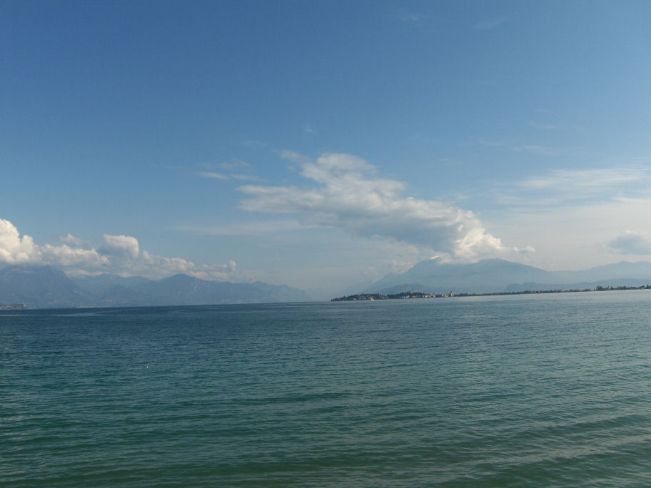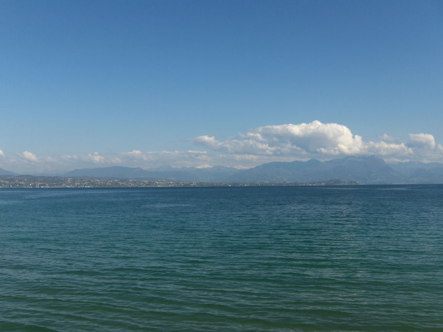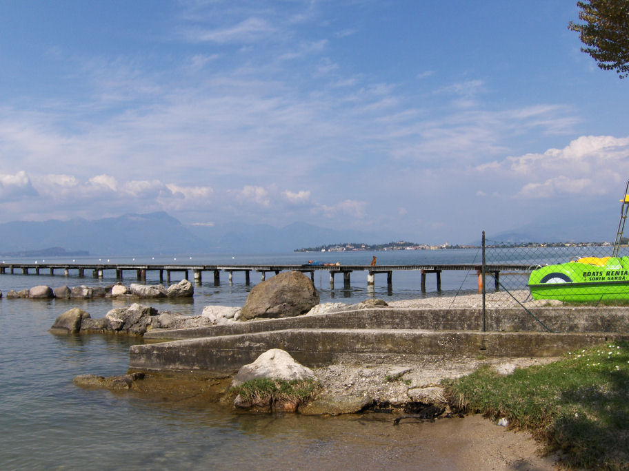 Da vi kommer tilbage på campingpladsen igen, går Kirsten og mig ned til stranden og fotograferer mod Sirmione