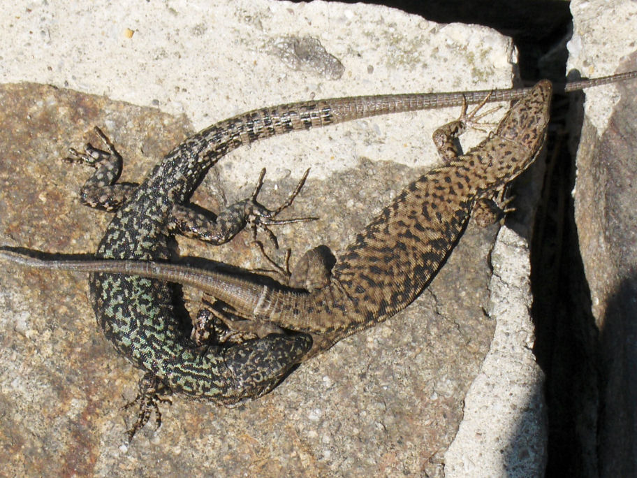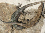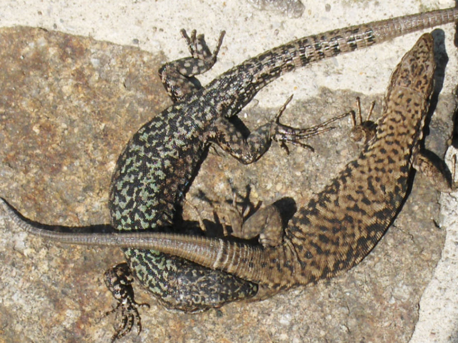 Firben; det ene firben bider det andet firben i bagbenet