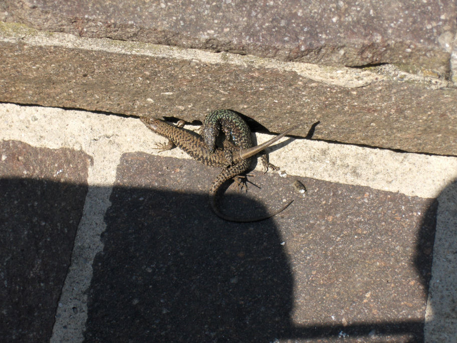 Vi spiste på en anden restaurant, hvor vi så to firben lege - vil jeg tro. (Kresten holdt engang et firben på halen, firbenet vendte sig hvæsende om og bed ham i fingeren, og det så faktisk værre ud end disse to firben, der bed hinanden.)