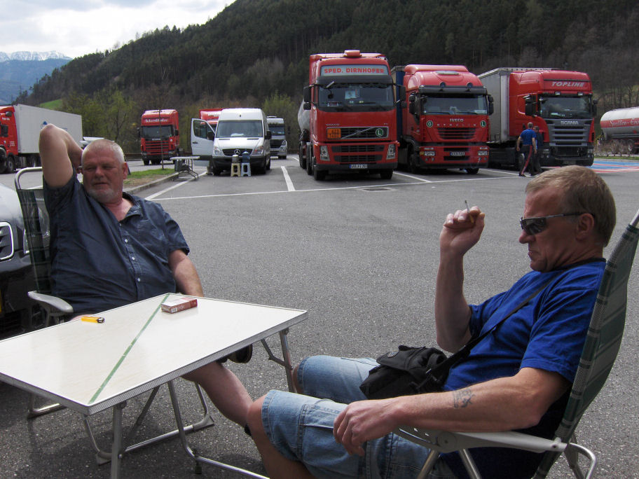 På en rasteplads inden den østrigske grænse stod der 2 busser med