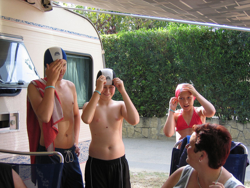 Ankomst til 'Eur Camping' i Roseto Degli Abruzzi ved 17 tiden, her bliver vi til på torsdag: Man får armbånd på ved ankomsten, inden man får lov til at komme ind på pladsen.