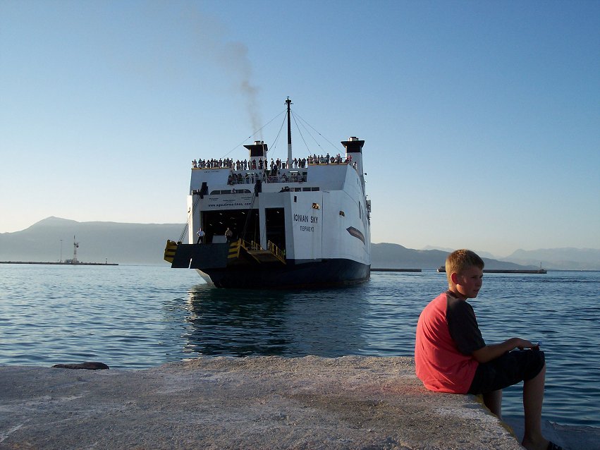 Kristoffer på rampen kort før 'Ionian Sky' lægger til: