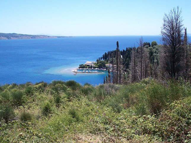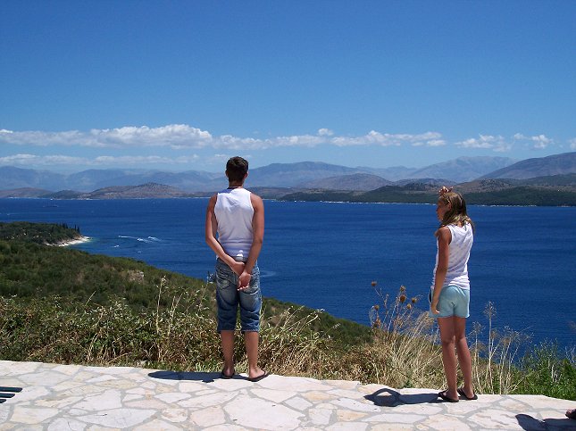 Vi kører en tur op til Sidari i nordenden af Korfu. På vejen kører vi forbi Ipsos, hvor vi bestiller 2 både til i morgen. Pris 80 € pr. båd. Vi gør holdt et sted undervejs til Sidari og nyder udsigten:
