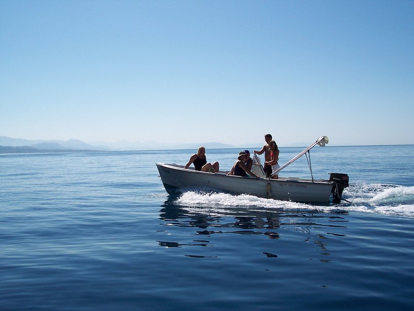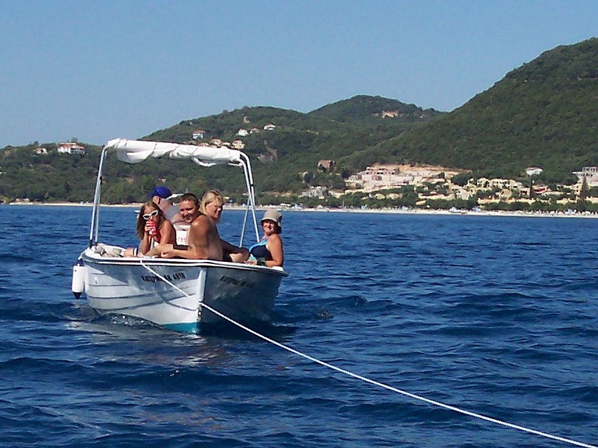 Vi kører til Ipsos, det er den første by, man kommer til fra Dassia, når man kører nordpå langs kysten. Vi havde lejet 2 både til kl. 10.