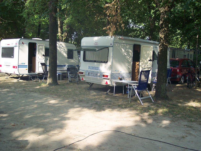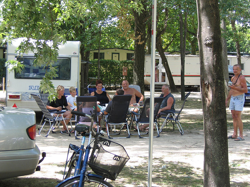 Vi skulle ikke køre ret langt denne dag og efter et par timer ankom vi til Camping Fusina, Venedig. Vi holder udenfor, imens der tjekkes ind pladsen: