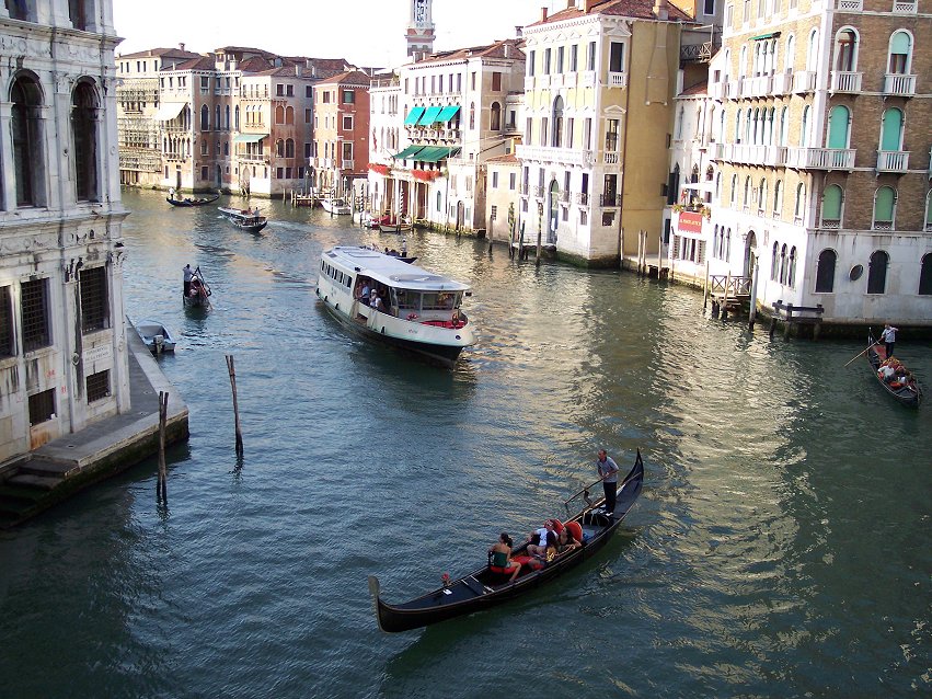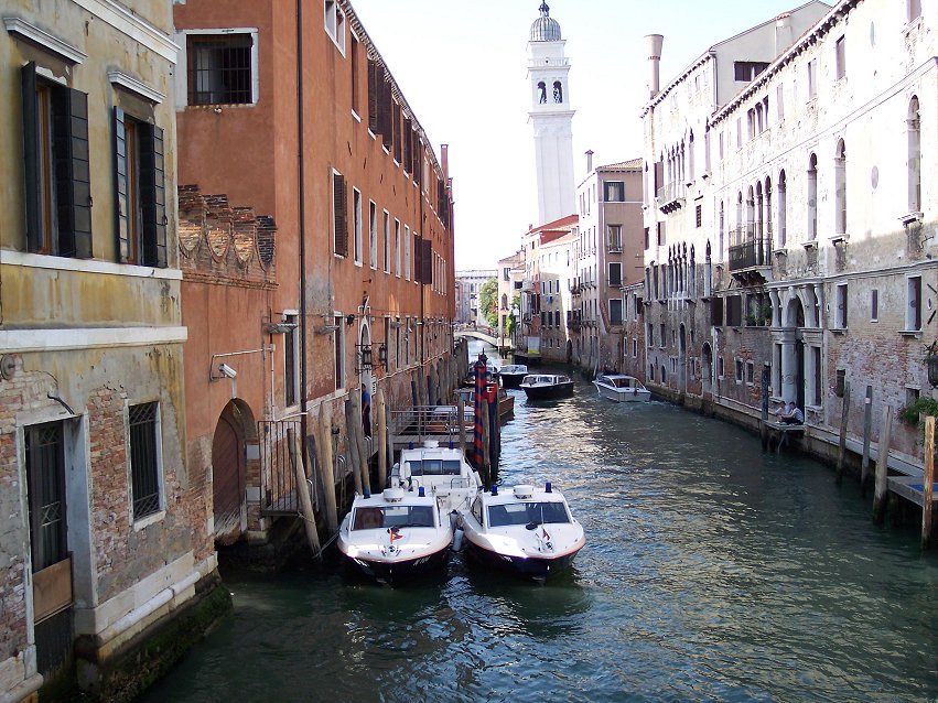 Vi sejlede fra båd-holdepladsen 'Zattere' til campingpladsen kl. 21.30.