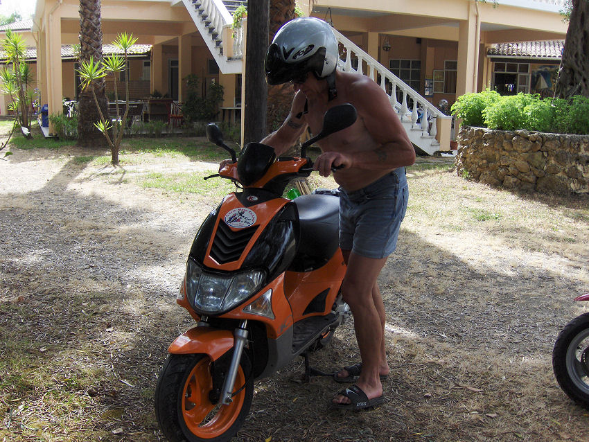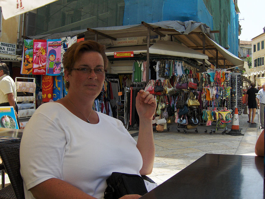 Kirsten, Camilla, Stine, lille Kristian og mig tager med bussen ind til Korfu by. John, Kim, Kristian, Kristoffer, Kresten og Vibeke lejer scootere og kører op til nordkysten og derefter videre til Paleokastritsa, en tur på over 90 km.