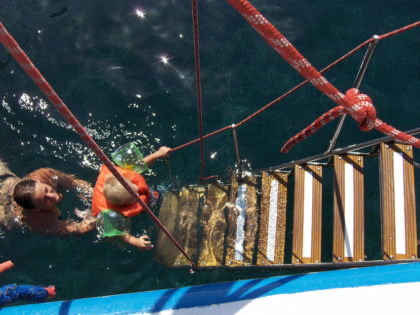 Vi skal på sejltur i dag med Gregory. Der er grillmad, vin og sodavand med i prisen, der er på 300€ for 16 personer og vi har båden helt for os selv. Turen starter ved 10 tiden og varer til kl. 16.15: