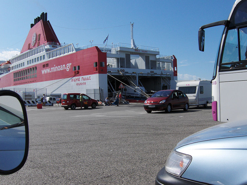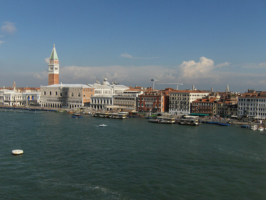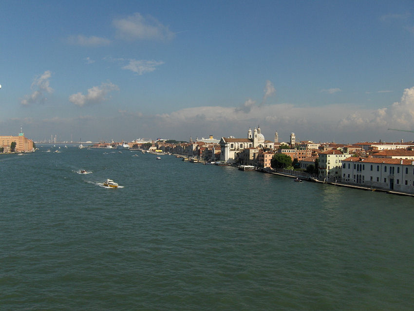 Vi lægger til i Venedig kl. 09.10. Der er problemer med hydraulikken til rampen fra campingdækket til bildækket, så klokken bliver næsten 10, før vi kører i land. Camilla, Kristian og Kristoffer kører i land kl. 10:
