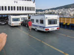 Vi kørte de få meter ned til færgen 'P4', der sejlede præcist kl. 9. Pris for billetter til 2 voksne, bil og cv: 63 euro.