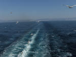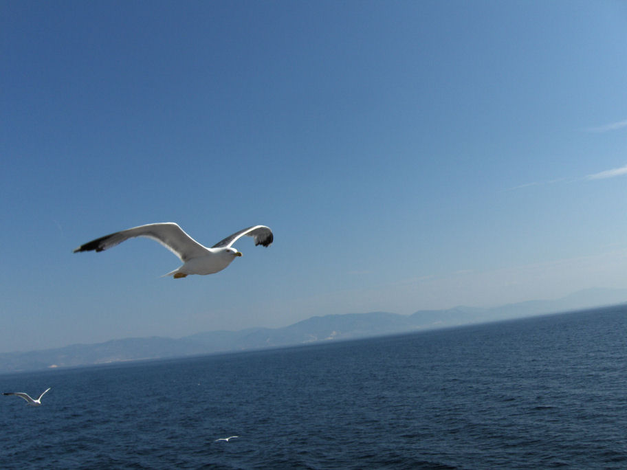 En flok måger fløj efter færgen hele vejen fra fastlandet til Thassos
