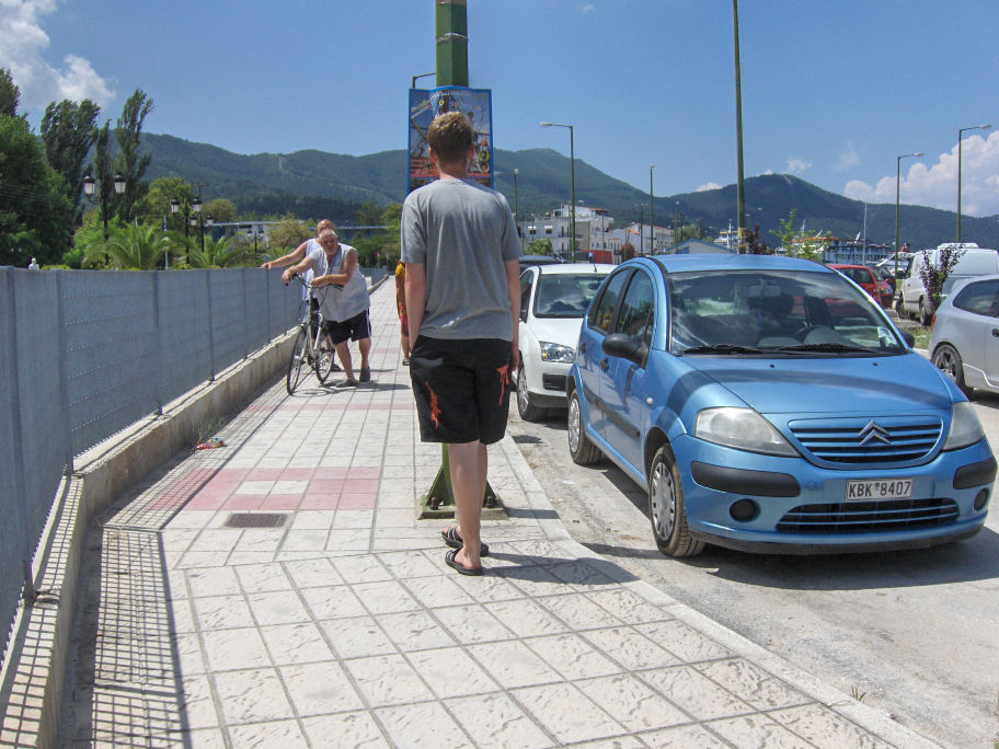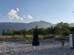 Da vi kom til Louloudis Beach, fortalte en servitrice i strandbaren, at tankvognschaufførerne strejkede. Vi håber ikke at strejken varer længe; vi har en kvart tank benzin og Kristian har næsten ikke mere.
