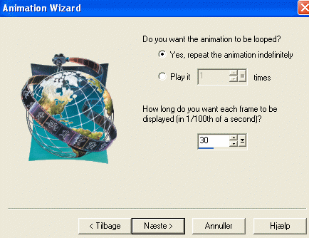 Vælg et tal for hastigheden af animationen. Jeg har valgt 30.