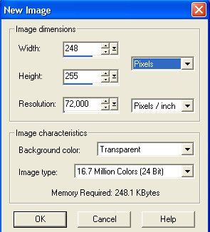 Opret et nyt tomt billede med de samme mål som billedet: 248 x 255.