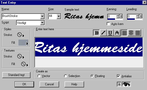Vælg skrifttype og størrelse. Skriv en tekst. Klik på OK.