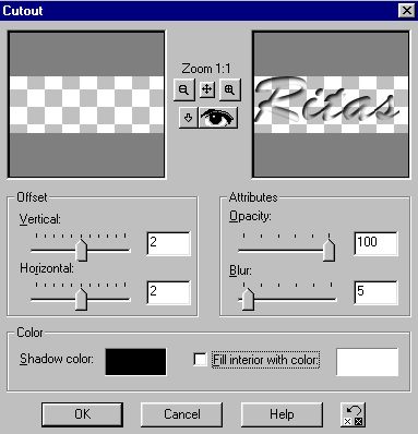 men bogstaverne bliver mørkere, når man bruger cut out effekten. |