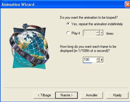 Sæt en prik ud for: Yes, repeat the animation indefinelity