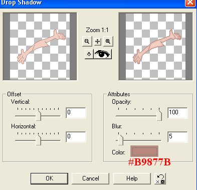 Klik på: Effects > 3D effects > Drop shadow, og brug disse indstillinger: