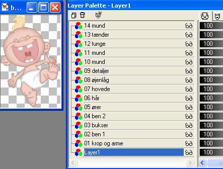 Vil man have en farvet baggrund, skal man klikke på 'Layer 1'