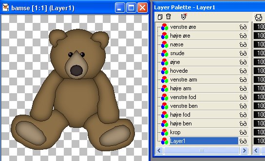 Vil man have en farvet baggrund, skal man klikke på 'Layer 1'