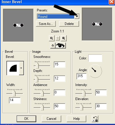 Klik på: Effects / 3D effects / Inner bevel. Vælg Round der har disse