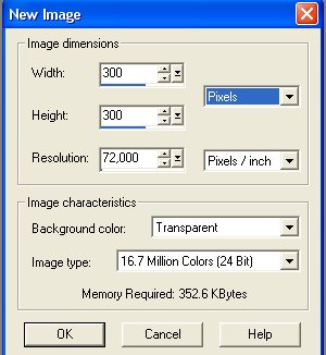 Opret et nyt image på 300 x 300 pixels.