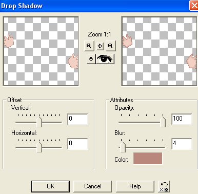 Klik på: Effects / 3D effects / Drop shadow, og brug disse indstillinger: