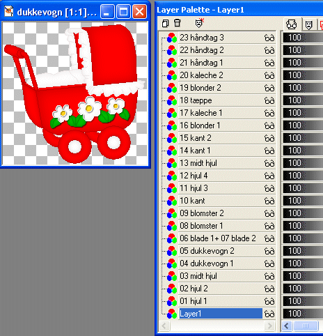 Vil man have en farvet baggrund, skal man klikke på 'Layer 1'