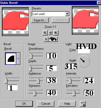 Klik på: Effects / 3D effects / Outer bevel.